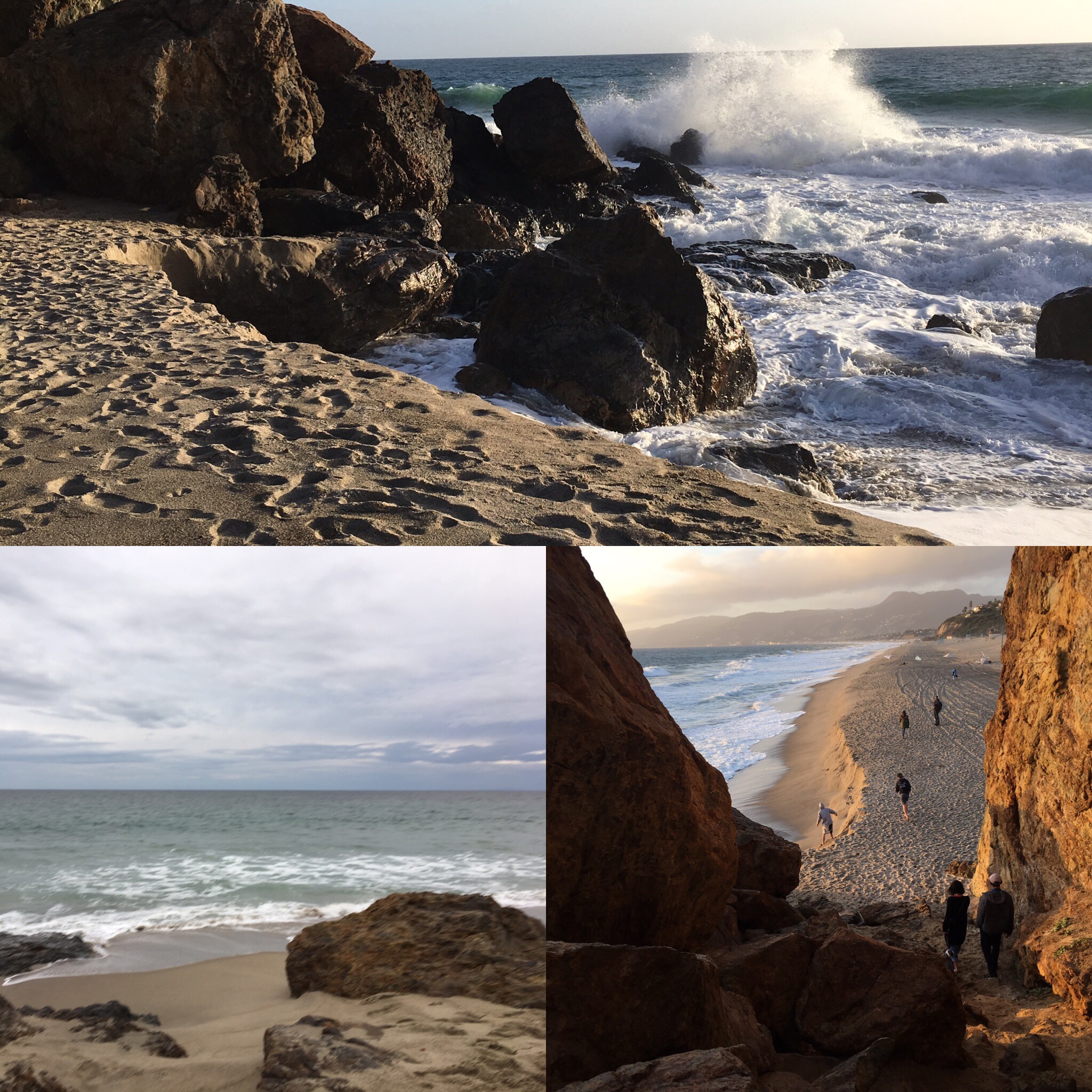 Two gray whales were spotted today in 2.5hrs. The first whale was spotted by the point heading south past Pirates Cove and the second gray whale was spotted 200yds off shore near tower 2 life guard stand. Both whales had visible blows and showed pectoral fins and flukes as they quickly traveled through separately. The strong surf changed the sand bar overnight taking away several feet of sand exposing huge boulders today. At sunset pelicans and a small pod of 5-6 dolphins hunted in the pounding high surf.