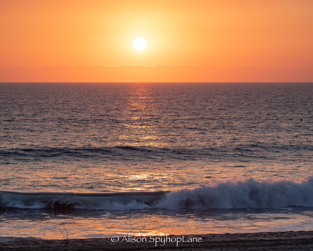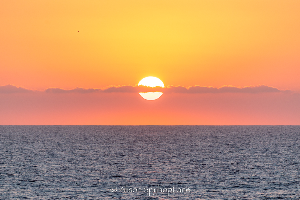 No Gray Whales observed on this first day of my tenth season to count, document and study the Northern Gray Whale Migration along the coast of Malibu at Point Dume State Beach, State Marine Reserve. Minus tide day 1.6 ft below the average low tide. 5-6 Dolphins traveled south just outside the surf with occasional surf riding. The sun set with a pink cotton candy and orange sherbet sky, through a hazy layer of cumulous clouds at the horizon.