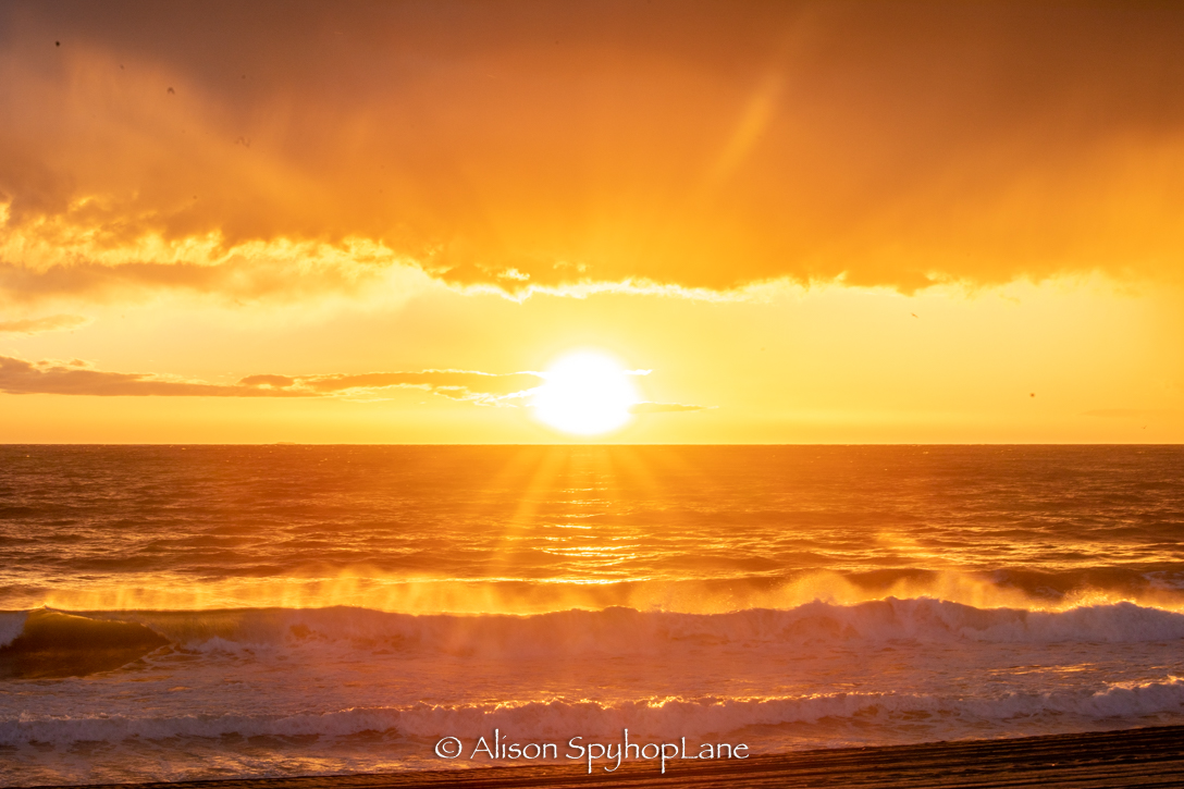 Gray whale vocalizations are also low frequency at 40Hz- 4 kHz with up to 6 basic sounds mostly clicks or congo beats combined with groans in the lower ranges. All I can say 🙂 is on the other side of these rocks, two whales zig zagged in rough surf for 30 minutes, before migrating onward. Eventually the wind died down and another whale popped up in the still rough surf, when Brad and Stephanie moved to the other side of the rocks as they played directly to the ocean. Even though we know the whales migrate and stop at their own pace and choosing, it was a totally magical way to end the day: hearing the sound bath while watching the migrating gray whales, as a storm rolled through, definitely synchronicity at its best. 🙂