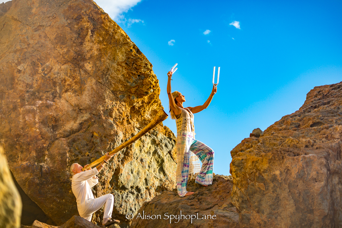 Stephanie used a variety of healing crystals, bells and instruments, as Brad played and the photographer set up the shots.