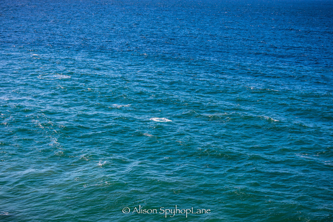 Gray whales like all mammals have hair. At birth the gray whale calf rostrums have multiple dimple like depressions or hair follicles for the bristly whisker like stiff sensory hairs called vibrissae, which have nerve endings that may help with lactation or learning to forage on the ocean floor. As gray whales mature, there’s less vibrassea. Juvenile gray whales have some around the mouth, adult whales may have some around the chin. In practical terms, a full head (or body) of hair like other mammals would slow the whales down on their long migrations. The whales high percentage of body fat, insulates to keep warm in cold ocean temperatures and is use for energy or fuel during the long migration. *****Seeing these whales today is motivating me to look closer at the whales I see these deep dimpled areas and compare with photos of emaciated whales with visible loss of the thick layer of blubber/body fat to see if those whales have more visible dimpled depressions and this is another sign of malnourishment or weight loss for some whales. An update will follow .