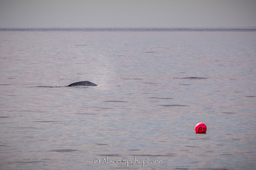 Second trio of thin underweight whales traveled through close to shore, side by side in synchronized breathing patterns.