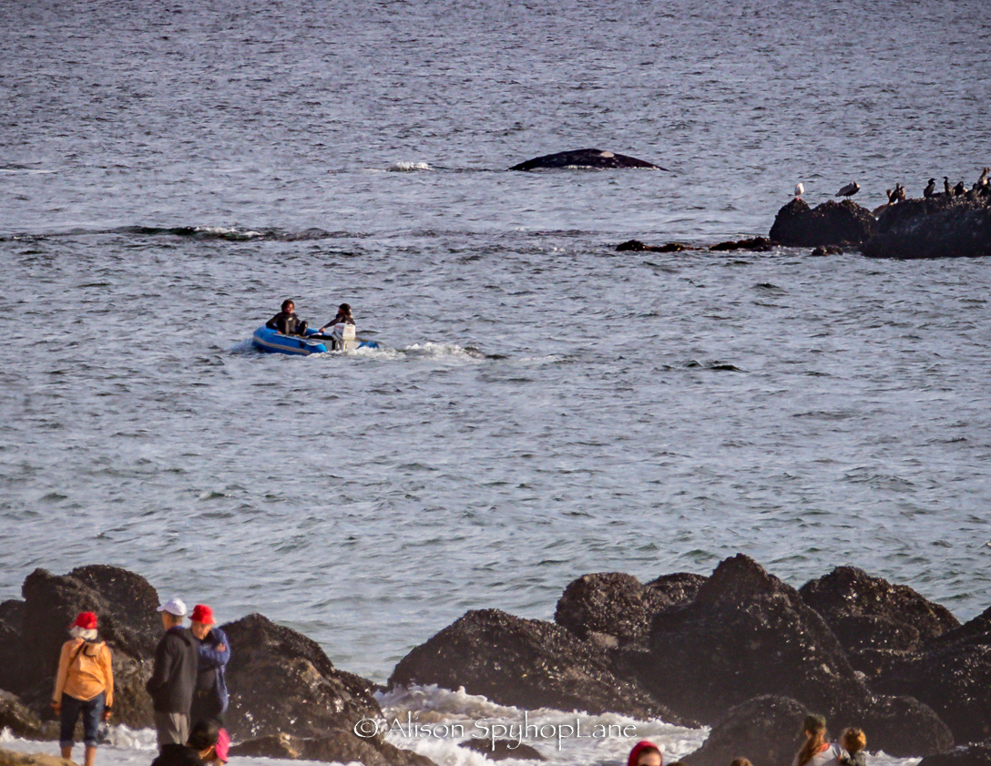 A motorized inflatable boat in Pirates Cove today with gray whale passing outside Bird Rock. Unfortunately this whale traveled through. In Malibu the safe passage of whales and dolphins are protected by The Marine Life Proclamation passed in Malibu in 2014 . Please be mindful of the gray whales migration route and all marine mammals including the sea lion colony and bottlenose dolphins that rely on safe passage in the waters surrounding Point Dume and the coast of Malibu. Know the state and local laws for using motorized devices especially in Marine Protected Areas.