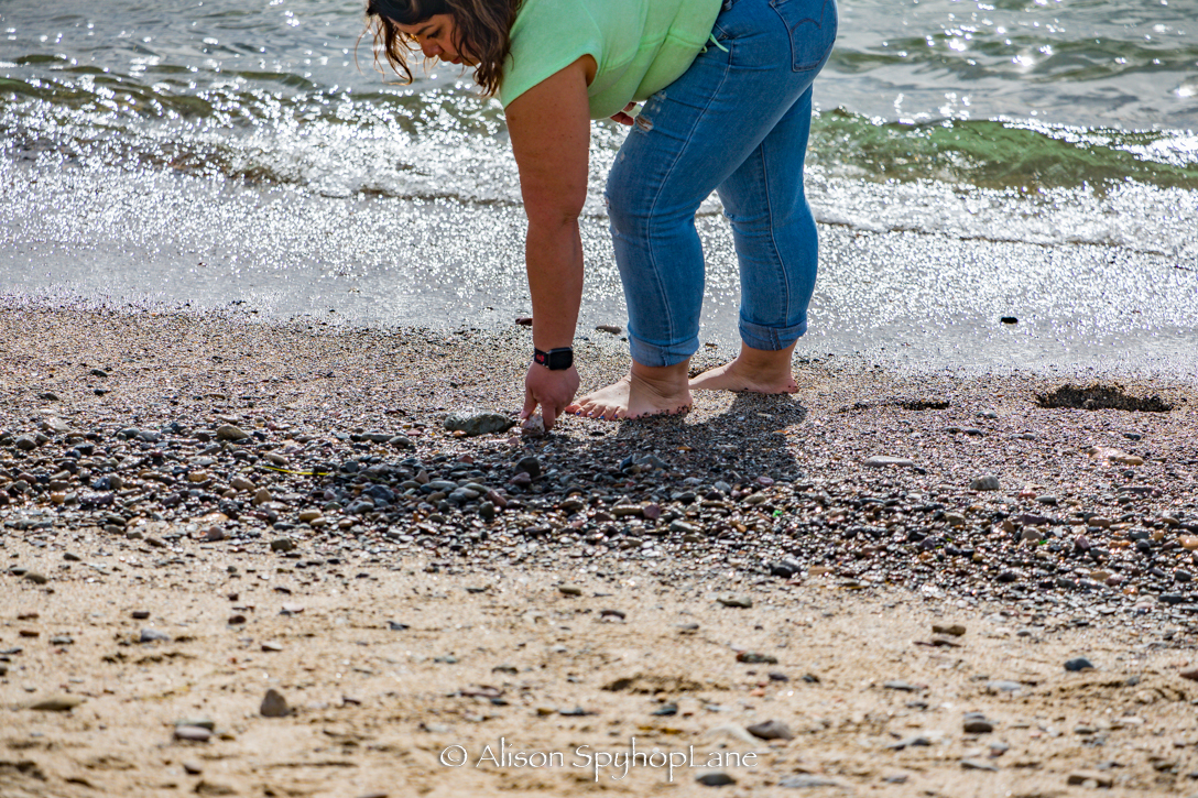 Shallow low tide provided ample opportunities for beach goers to look for sea glass.