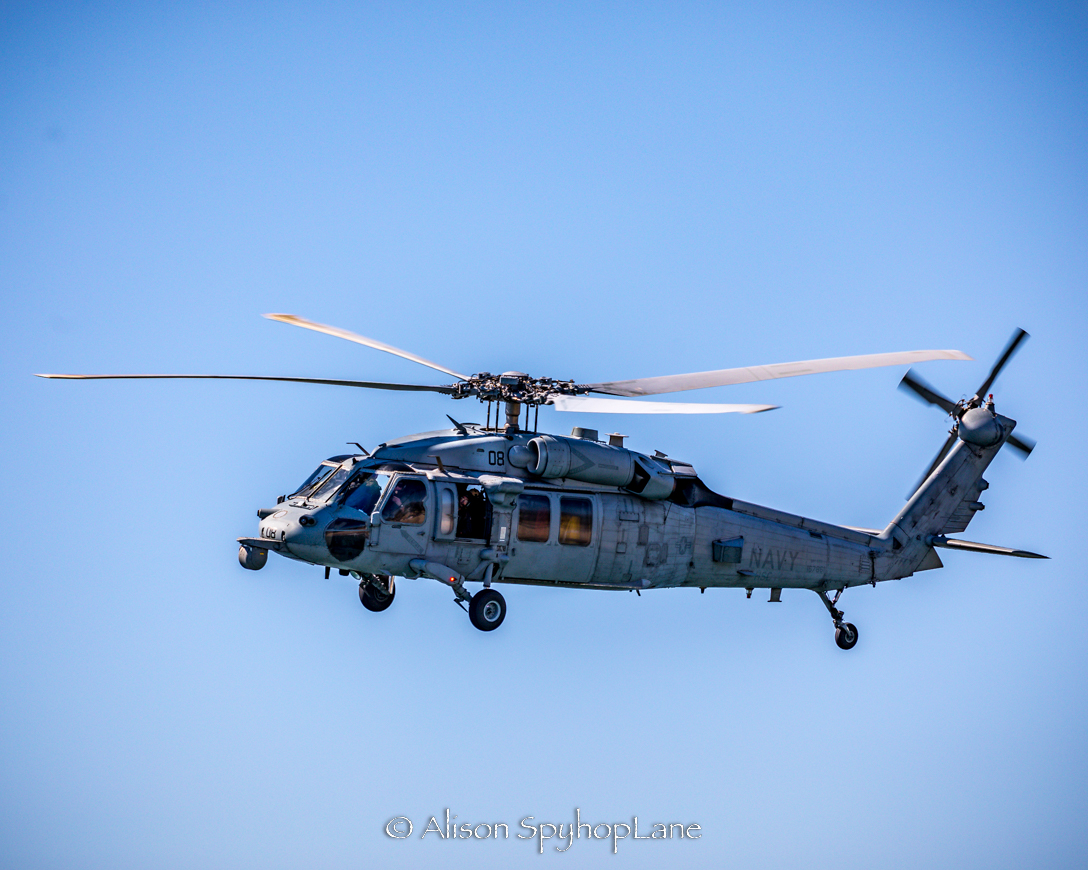 Low south bound Naval Helicopter flyby over Point Dume Natural Preserve.