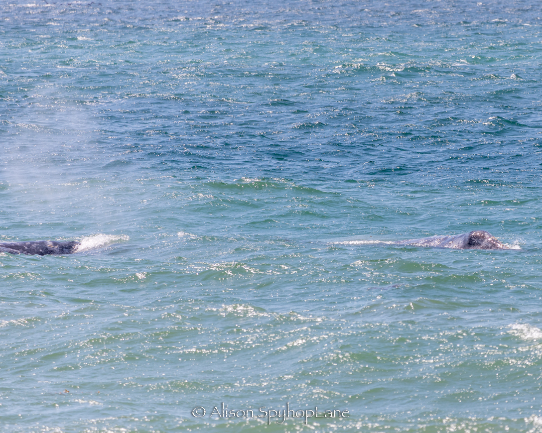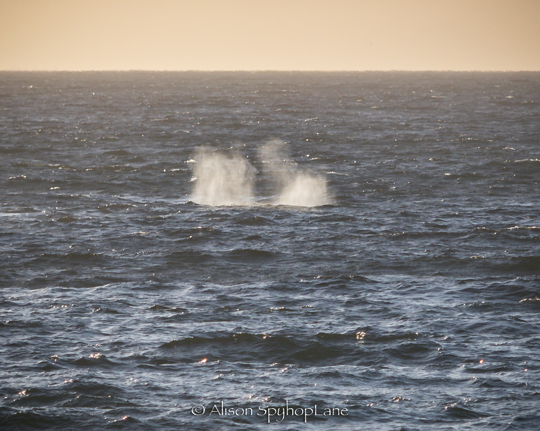 A windy late winter day with rough choppy seas making it hard to spot and find whales, Gusts up to 20mph. Can you spot the gray whale blows in the photos below?