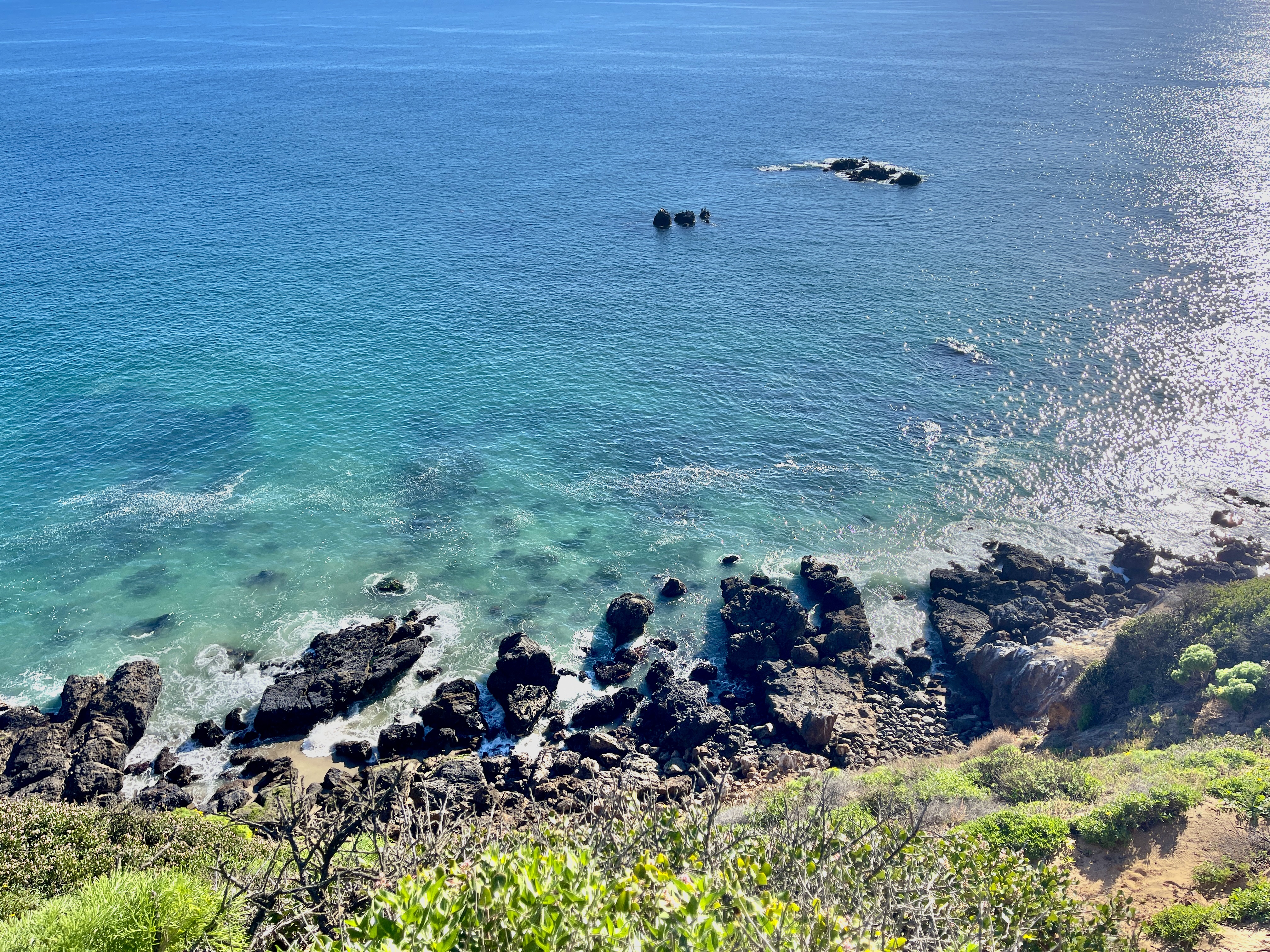 Bright sunny clear sky, calm flat ocean, 64 degrees, slight breeze after a morning of strong gusty Santa Anna winds. No gray whales sightings despite perfect viewing conditions. No sea lions in sea lion cove. Two to three juvenile sea lions barking and taking turns as king of the hill at the top of SeaLion Rock. The new stairs are open to Big Dume Cove but connecting walking path to Coreopsis trail is still under construction after heavy storm erosion and maintenance to trails. The Giant Coreopsis plants are just starting to bloom with ~20% full bloom in some areas. The plants are lush and green with multiple buds.