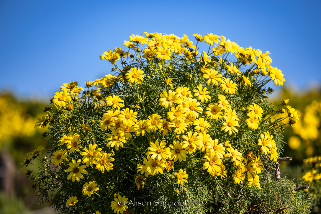 The Giant Coreopsis is near full bloom. 80% of the plants have blooms and over 50% of those have multiple buds.