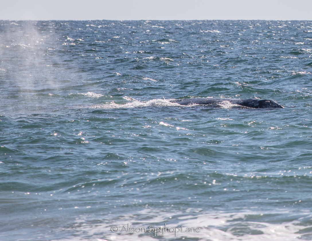 Sunny 62 degrees with steady 5 mph wind started the day. After noon the wind picked up to a steady 10 mph with gusts 20+mph, strong enough to blow beach chairs up and over. Despite the rough choppy surf and white caps, a trio of local scuba divers went out to the pinnacles after the second north bound whale sighting which included one healthy and one underweight whale evidenced by the dip in the neck area where a robust fat pad should be. A third sighting went by quickly in the surf line and was seen 26 minutes later (by a reliable eyewitness) passing Zuma 500+ yards off shore. A busy day with overhead loud helicopter flyovers in all directions today.