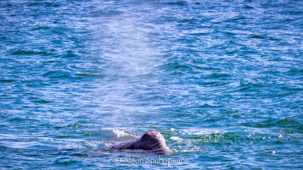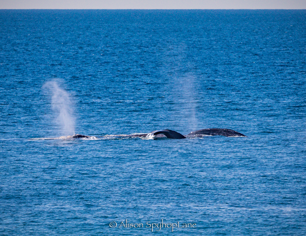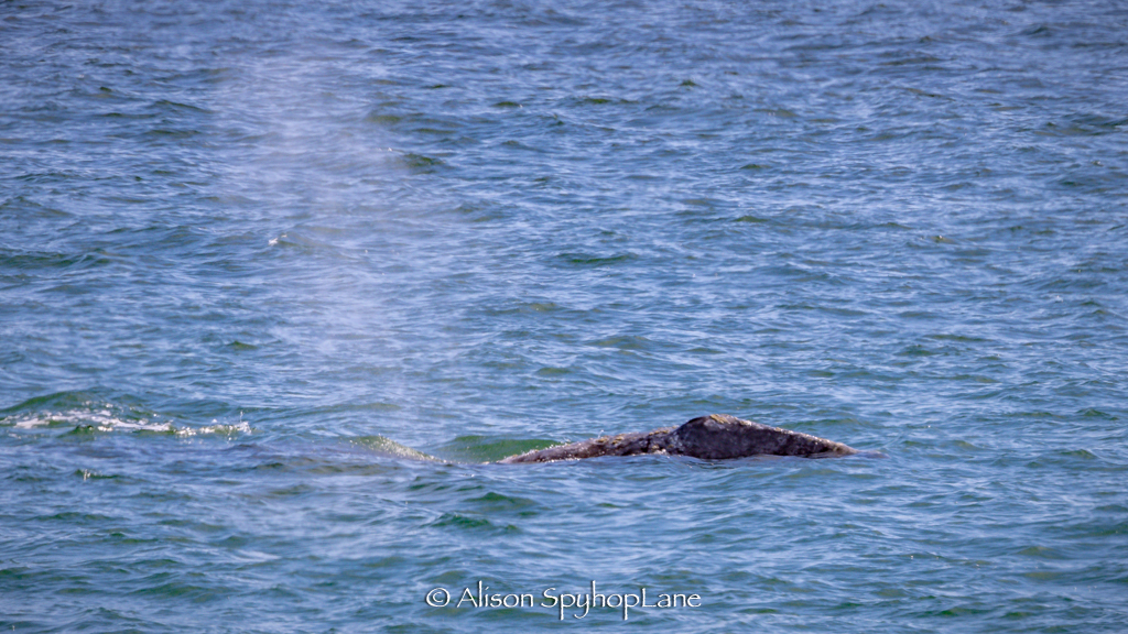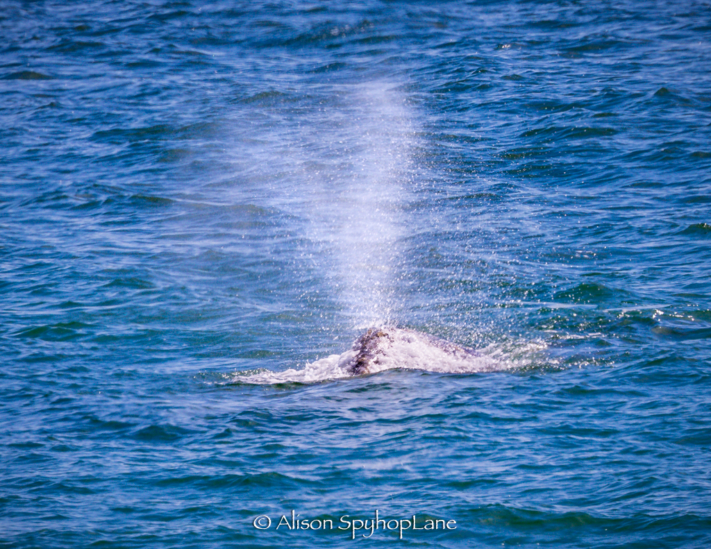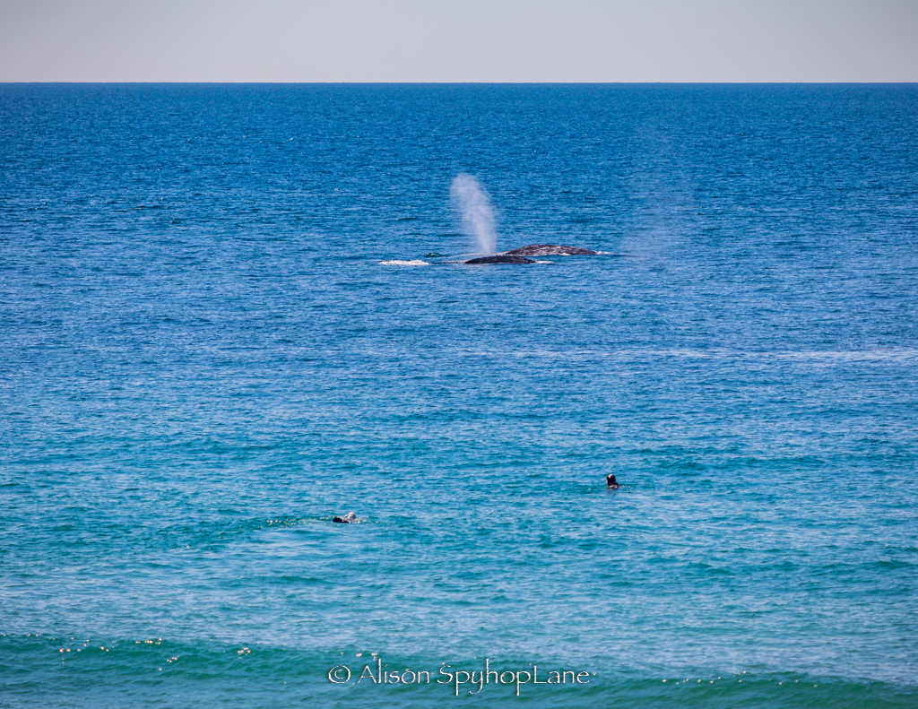 Other sightings involved two underweight whales, and one whale with what looks like older propeller scars along the dorsal hump area. One of the underweight whales changed directions in the surf line several times, exhaling underwater making bubble blast rings that dissipate on the surface to form white foamy ridge circular areas with flat water in the middle.