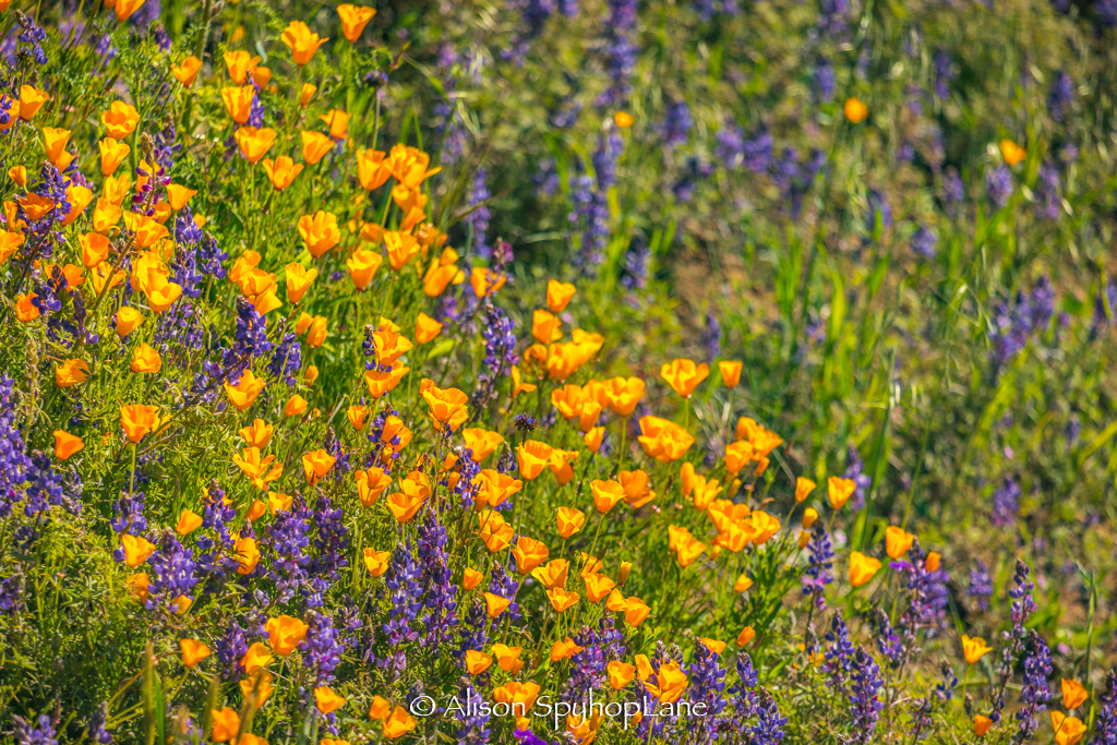 Wildflowers are in full bloom along the hills and local canyons! Lots of varieties hidden within the poppies and lupine this year, including wild cucumber, sage, salvia, fiddle necks and rusty popcorn to name just a few. Tall fields of wild oats, wheat and buckwheat are abundant too. At Point Dume Natural Preserve the coreopsis is well past peak bloom but there are still native sunflower and non native crown daisy blooms to be enjoyed.