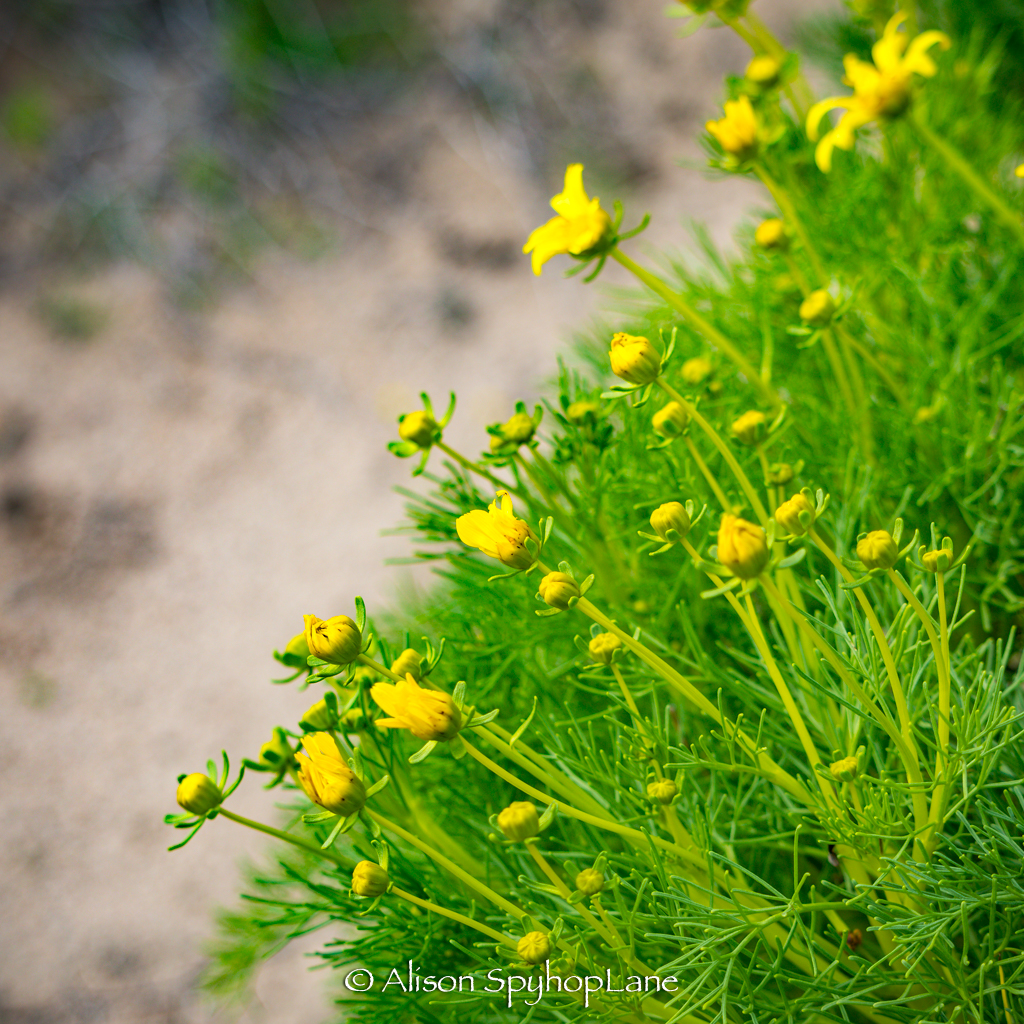 Giant Coreopsis bloom is now underway with ~10 % of plants showing flowers and ~90% have buds. No sand in Pirates Cove and increased erosion under the Rock Climbing wall exposing rocks typically buried deep under the sand.