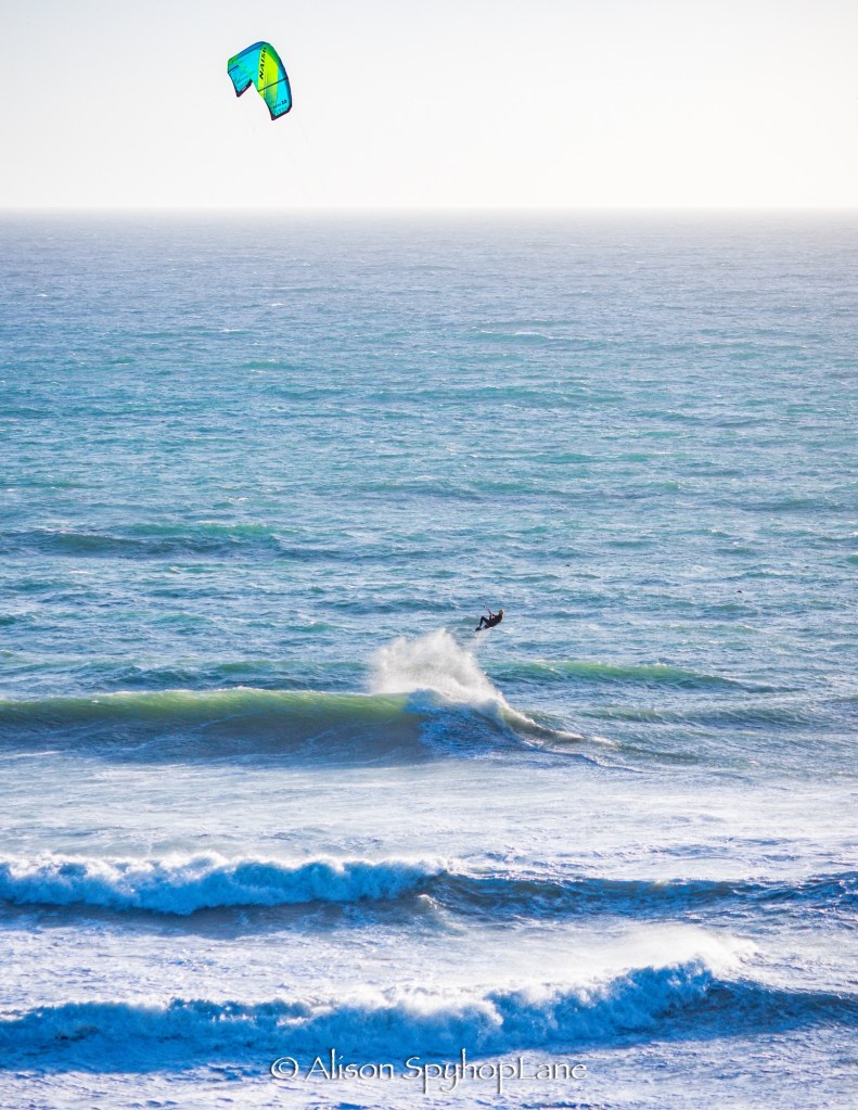 Surfers enjoyed wind surfing in the late afternoon. At Westward Beach there was evidence of yesterday’s rain storm with wide run off swales cut into the beach and large tree trunks littered the beaches along the coast.