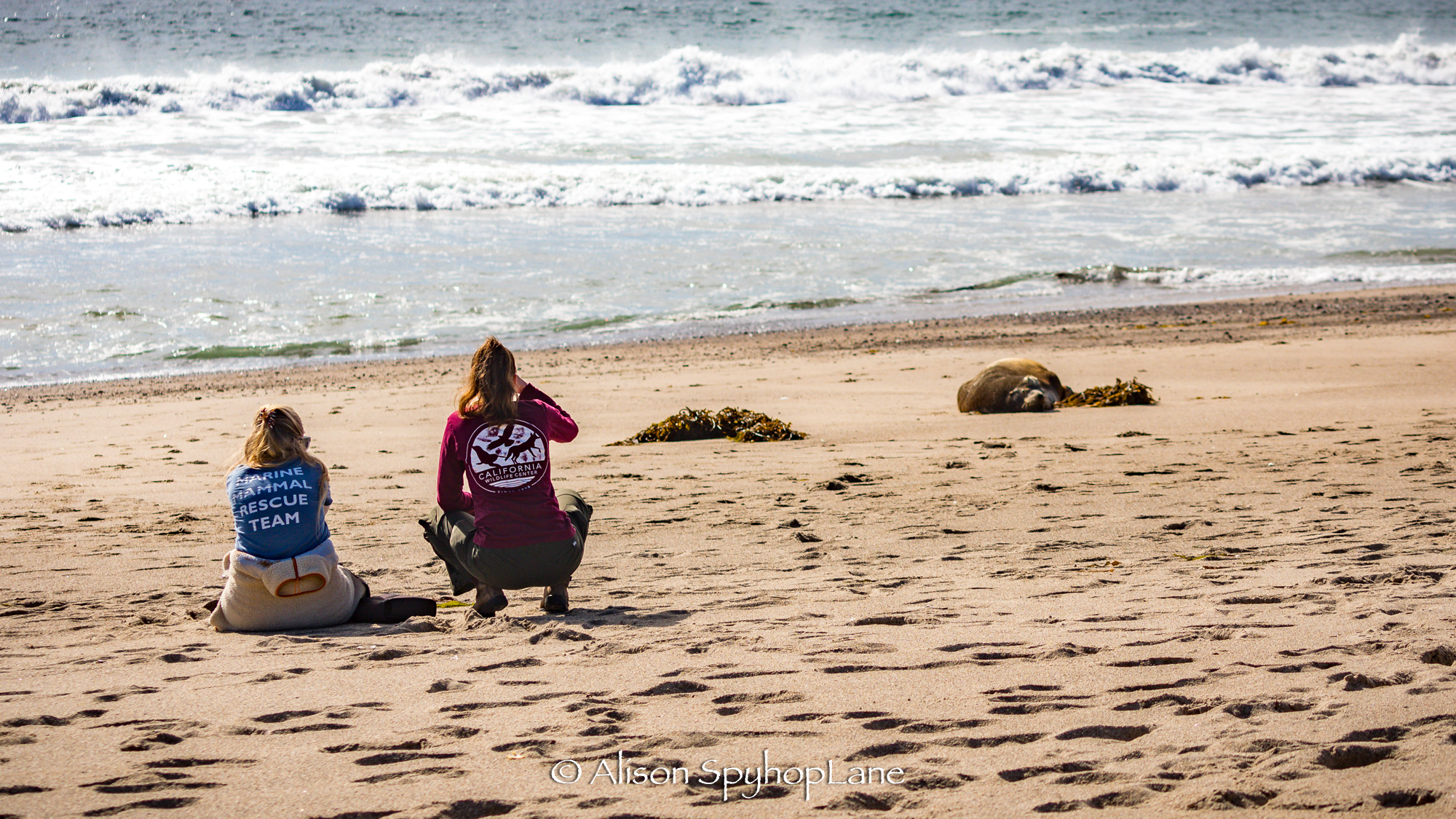 Volunteers keep a watchful eye on the ill Sea Lion until more help arrives to transport for further assessments at the CWC. There is no cure but treatments can involve anti-seizure / anti-convulsant medications , Intravenous fluids to flush the toxins and fresh non contaminated fish. The CWC is currently getting 40-50 calls a day for Sea Lions along the Malibu Coast.