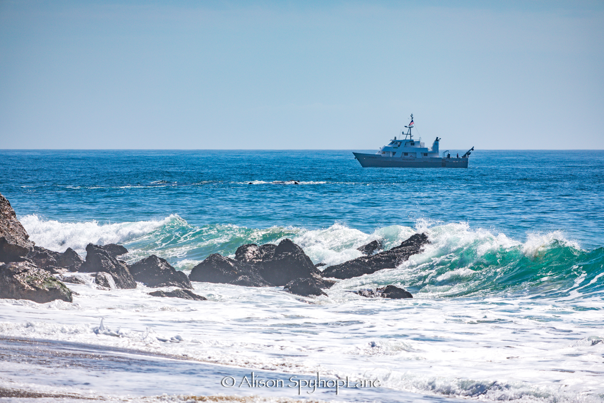 Research Vessel LA MER observed doing water quality sampling near shore today. The same ship has been observed in several locations recently. Point Dume is in the Northern end of the Santa Monica Bay. In addition to typical water sampling the local areas are being carefully monitored after the local wildfires, including the Palasades Fire for toxins and debris. Heal the Bay is advocating for the local waters and driving conservation efforts to ensure a healthy ecosystem protecting the abundance of marine life and human life along the impacted fire areas.