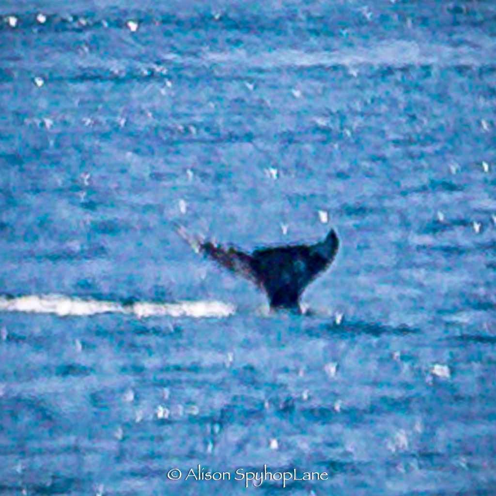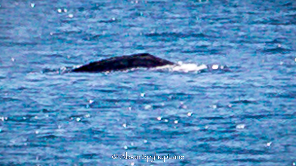 The FIRST COW/CALF of the season passed by during the drills. The pair did not stop and traveled through at a steady fast pace with the calf alternating sides on each surfacing. I was barely able to capture the images below as they went further out to avoid the drills closer to shore.