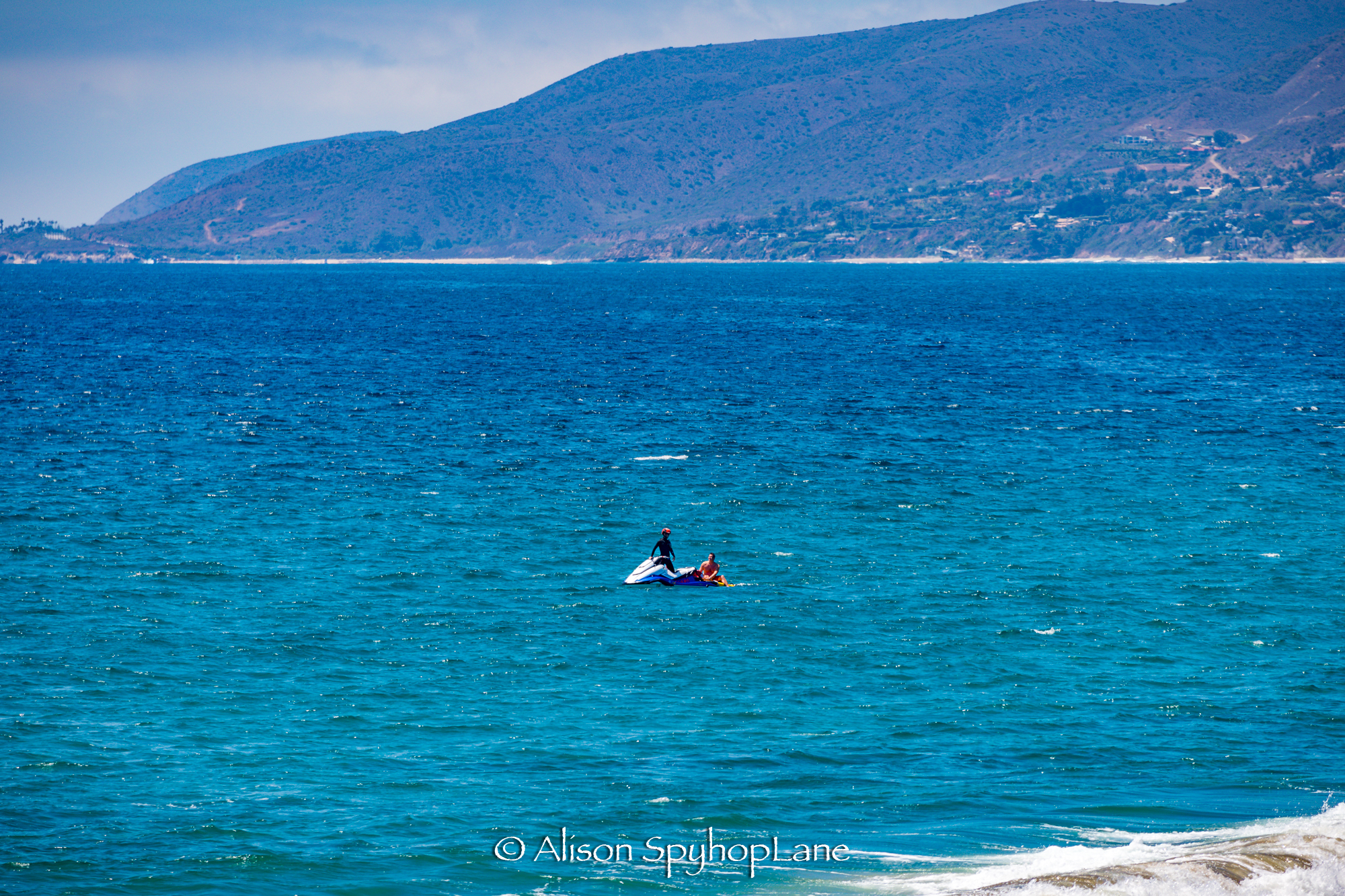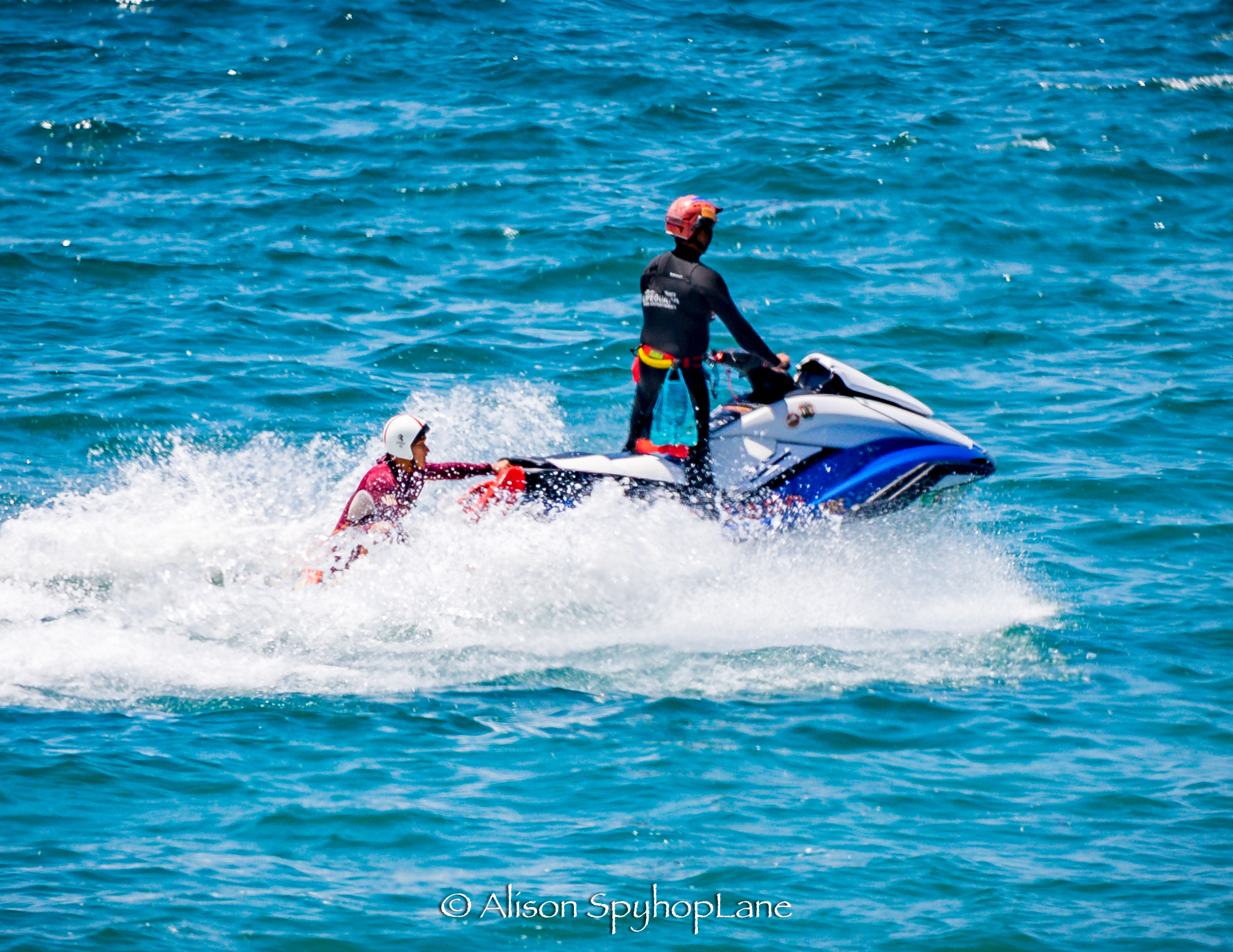 LA County Ocean Lifeguard Specialists were out on the Jet Ski today performing rescue drills to practice life saving ocean preparedness skills. Rip tides can quickly take swimmers off shore into deep water but the LA County Ocean Lifeguard Specialists train year round and are prepared for any and all emergencies.