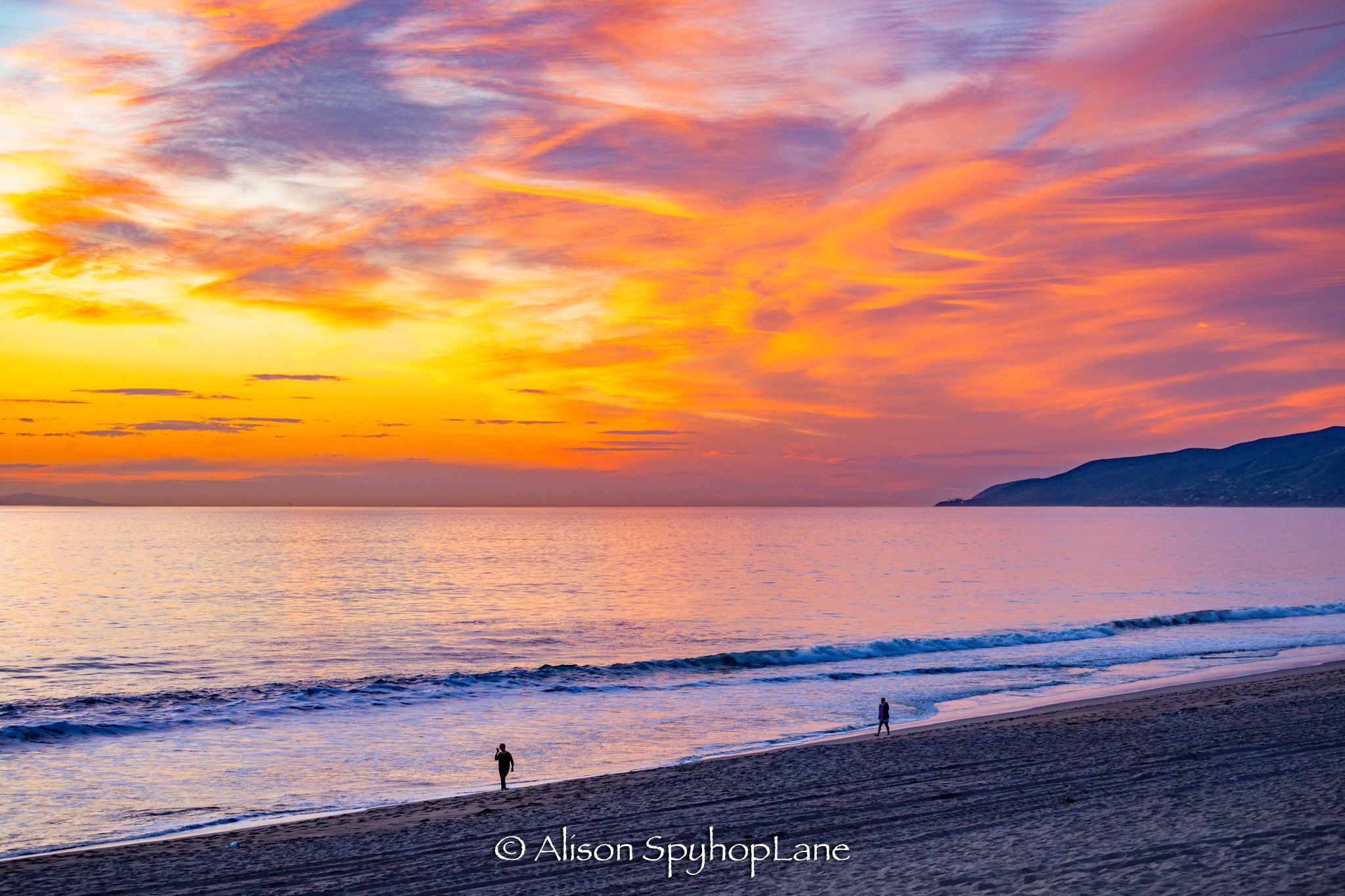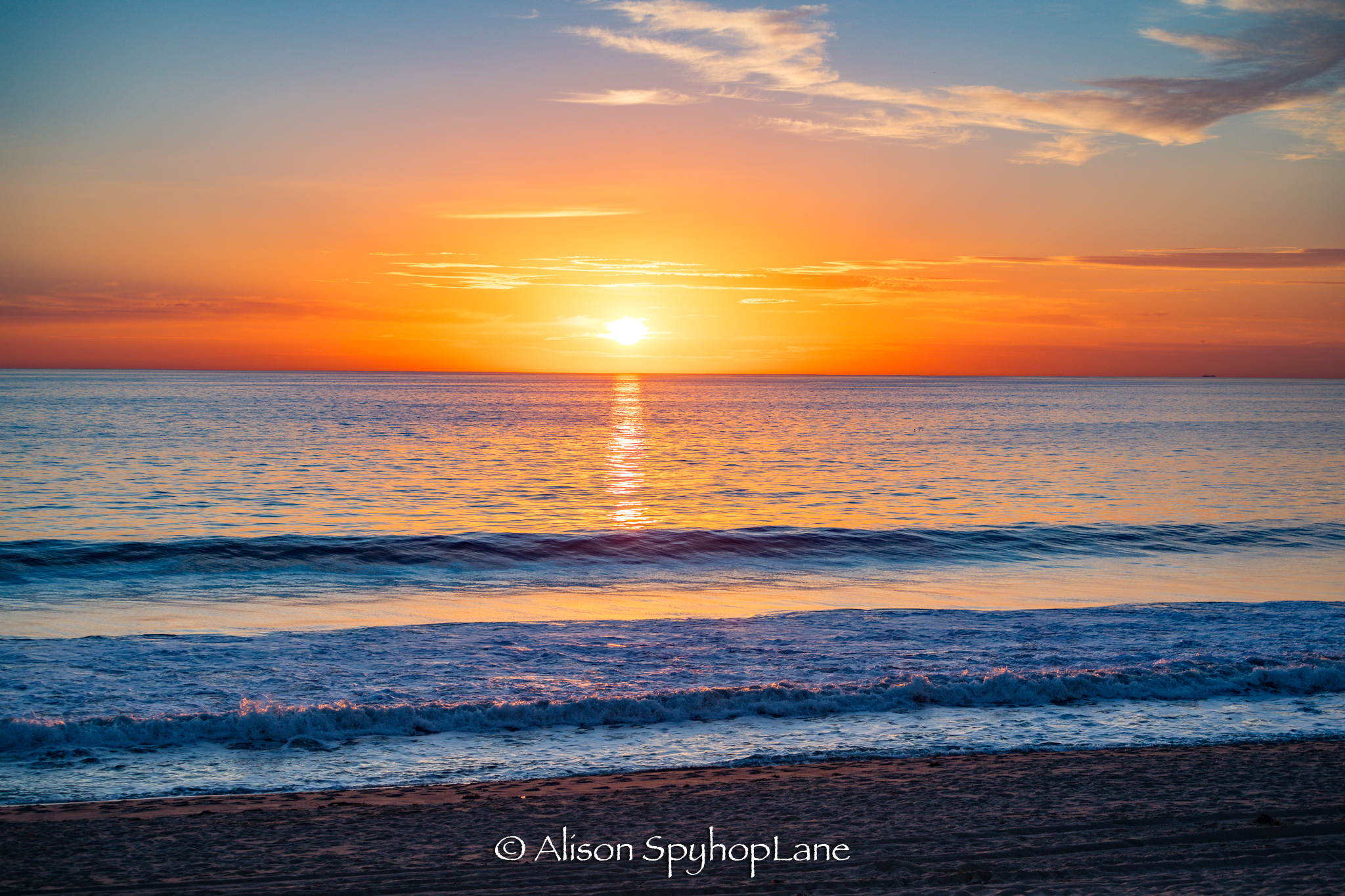 A bright orange golden glow at sunset thanks to the scattering of light known as the “Rayleigh scattering” of which the yellow/ orange rays are a longer wavelength and can be seen at sunset and sunrise, shorter wavelengths give us the blue sky during the day.