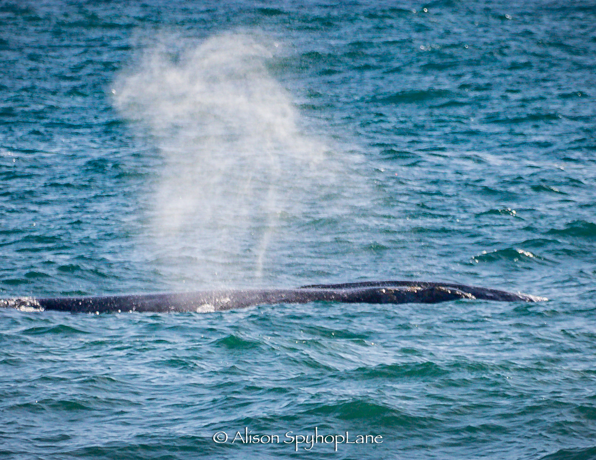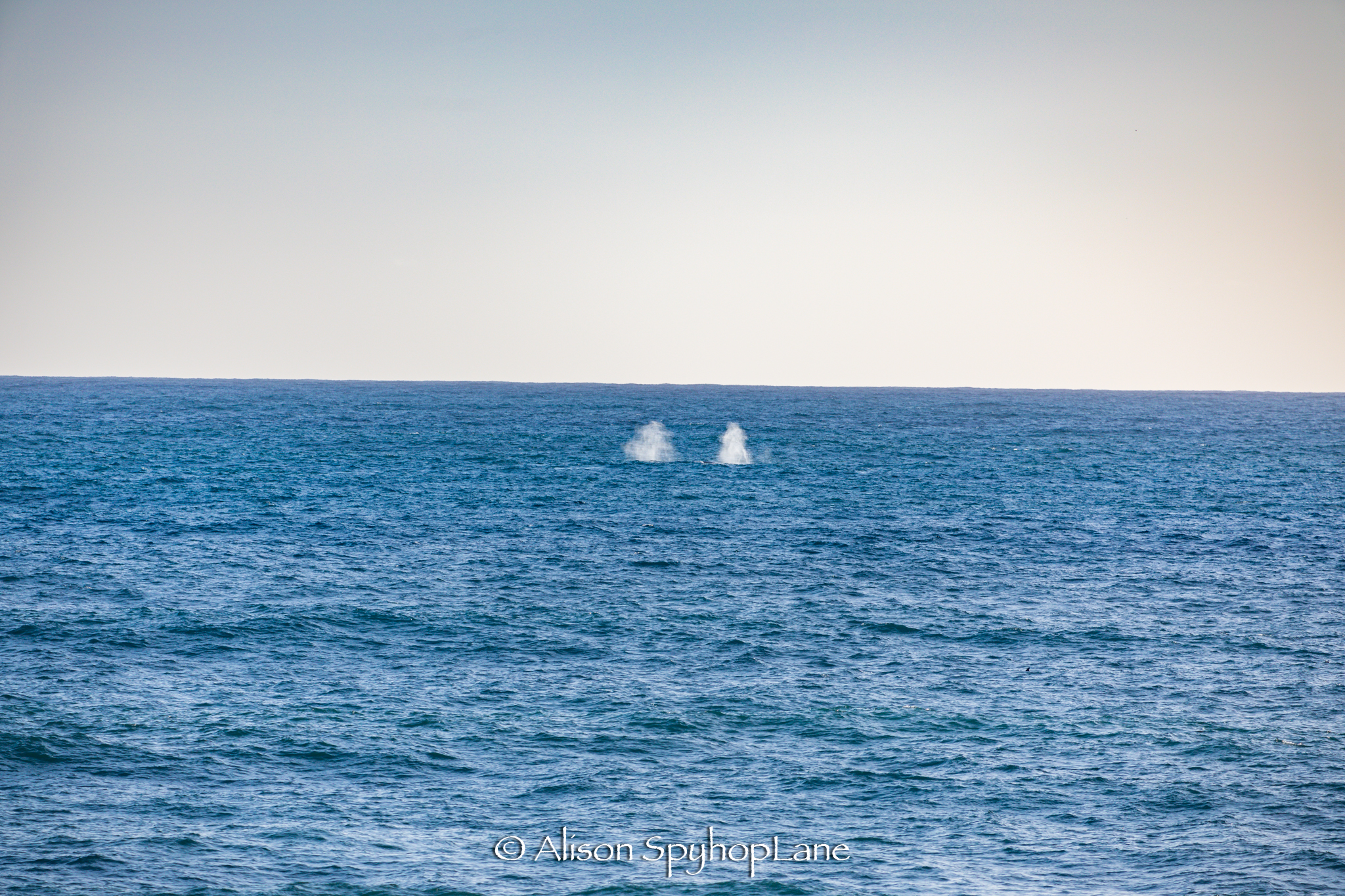 The first sighting: A solo stealthy Gray Whale traveled through half a mile off shore.